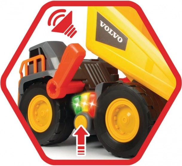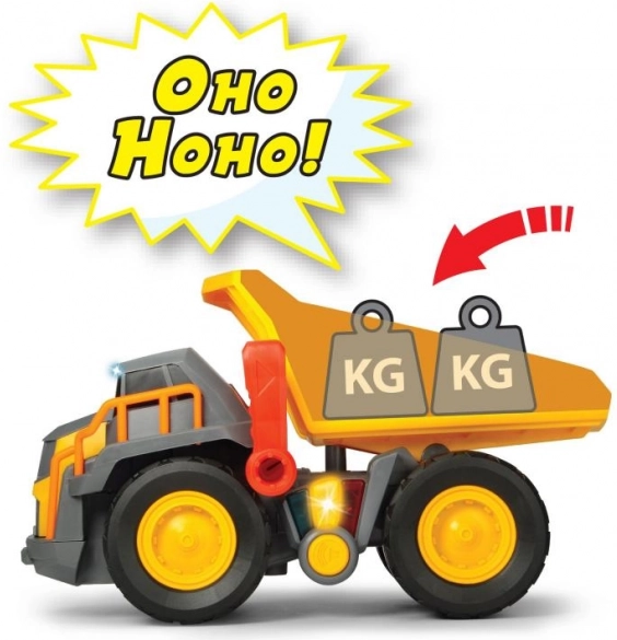 A Volvo teherautó valósághű fényekkel és hangokkal van felszerelve, amelyek különböző terhelésekre reagálnak, ezáltal igazi játékélményt nyújtanak.