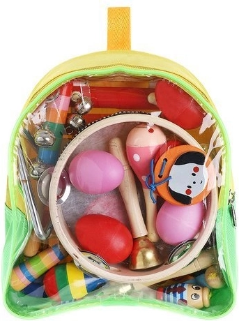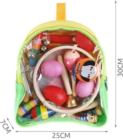 A készlet praktikus hátizsákba van csomagolva. Cipzáras záródással rendelkezik, amely megakadályozza a hangszerek kiesését. A kis hátizsákba való teljes beleférés miatt hosszú autóutakhoz ideális. Kevés helyet foglal és könnyű, így a gyerek önállóan is viselheti, szülői segítség nélkül.