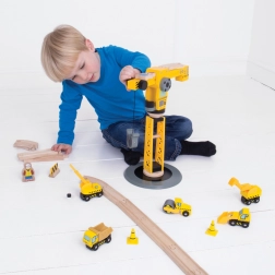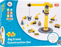 fából készült építőkészlet daruval BIGJIGS RAIL