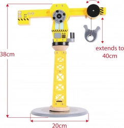 Ez a minőségi, fából készült építőkészlet forgatható daruval és mágneses horoggal végtelen játékélményt kínál a gyerekeknek. Masszív kivitele és biztonságos anyagai miatt ideális a mindennapos játékhoz és a készségek fejlesztéséhez. A markáns sárga építőjárművek azonnal felkeltik a gyerekek figyelmét.