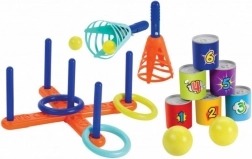 Élvezze a szórakozást a 3 az 1-ben játék szettel, amely három népszerű játékot tartalmaz beltérre és kültérre: labda elkapás, karikadobás és konzervdoboz leverés. Tartós műanyagból készült Franciaországban.