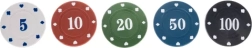 Színes zsetonok 5–100-as értékekkel és kb. 4 g-os kellemes tömeggel, kiválóan keverhetők, és autentikus játékélményt nyújtanak.