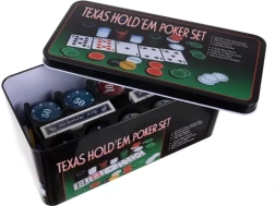 Élvezd az otthoni versenyeket, mintha kaszinóban lennél. Ez az univerzális készlet ideális a TEXAS HOLD’EM pókerhez és más kártyajátékokhoz is. A masszív fém doboz védi a tartalmat, megkönnyíti a tárolást és a szállítást, míg az organizátor/állvány a zsetonokat és a kártyákat is rendezetten tartja.