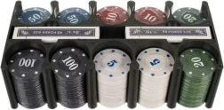 Minden, amire egy otthoni versenyhez szükség van: 200 zseton, 2 pakli kártya, funkcionális zsetonok és játékalátét egyetlen hordozható szettben.