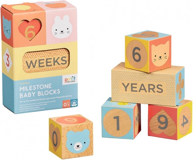 Őrizd meg az emlékeket minden mérföldkőről a Petit Collage mérföldkő kockáival. A különböző oldalakra nyomtatott mintáknak köszönhetően könnyedén összeállíthatod a dátumot, életkort vagy üzenetet, és így szép, megosztásra kész fotókat készíthetsz. A FSC bükkfából készült természetes kivitel környezetkímélő és biztonságos újszülött kortól.