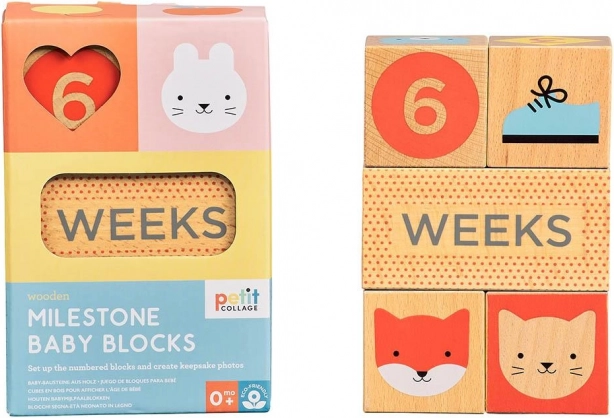Stílusos mérföldkő kockák a Petit Collage-tól, melyek segítenek megörökíteni babád és várandósságod legfontosabb pillanatait. A FSC tanúsítványú bükkfából készült szett színes nyomatokat, számokat és szimbólumokat kínál egyedi, áttekinthető fotók készítéséhez. Ideális születéshez, az első hónapokhoz és évekhez, valamint várandóssági fotózáshoz is.