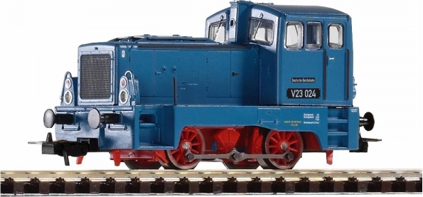 Hű és részletgazdag modell a DR színeiben és feliratozásával készült V23 dízel tolatómozdonyról. Kompaktsága ellenére számos apró részletet kínál a külön felhelyezett alkatrészeknek köszönhetően. A festés és a nyomtatás – az összes dekoratív elemmel – a legmagasabb színvonalú, az Expert termékvonalnak megfelelő minőségben. A modell nagy teljesítményű, lendkerékkel felszerelt motorral rendelkezik, a nyomaték kar segítségével kerül át a második tengelyre. Menettulajdonságai különösen kis sebességnél tűnnek ki. A robusztus, cinköntvény alváz lehetővé teszi reálisan hosszú szerelvények vontatását és tolatását. A fehér/piros LED világítás a menetiránynak megfelelően vált. A modell külön erre a célra készült digitális dekóderrel, hangmodullal és hangszóróval bővíthető. Fő jellemzők: két tengely, lendkerekes motor, két gumigyűrűs hajtott kerék, irányfüggő fehér/piros világítás, PluX22 csatlakozó NEM 658 szerint, NEM 362 vonókészülék rövid kapcsoló kinematikával. Dokumentáció: Kezelési útmutató és pótalkatrész-lista 52542 sz. modellhez (DE, EN, F, ITA, S, CHN, NL, POL, RUS, CZ)
