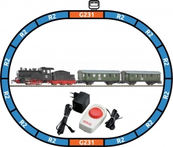 Teljes kezdőkészlet H0 méretarányú modellvasúthoz BR 98 gőzmozdonnyal és két DB, III. korszak személyvagonnal. Tartalmaz aljzatos ovális vágánykört, analóg vezérlést és mindent, ami az azonnali üzemhez szükséges. A strapabíró aljzatos sínek megkönnyítik a pálya építését és bővítését.