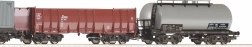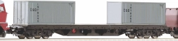 A szerelvény tartalmaz konténeres pőrekocsikat, nyitott kocsit és tartálykocsit az autentikus vegyes teherhez és változatos összeállításokhoz.