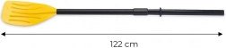 A műanyag összecsukható evezők felfújható csónakokhoz, matracokhoz és egyéb vízi járművekhez készültek. Pontosabban két részből álló műanyag nyéllel és műanyag lapáttal rendelkeznek. Az evezők egyes részei stabilan, csavarozással kapcsolhatók össze. A csomagban található biztosítógyűrűknek köszönhetően az evezők biztonságosan rögzíthetők.