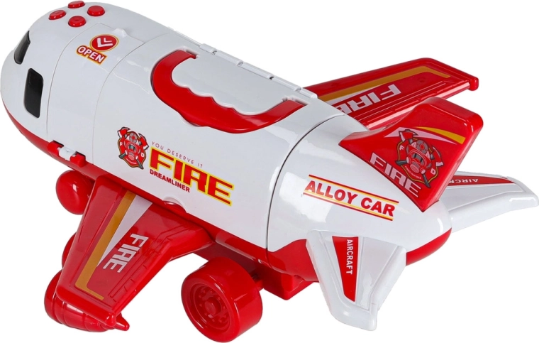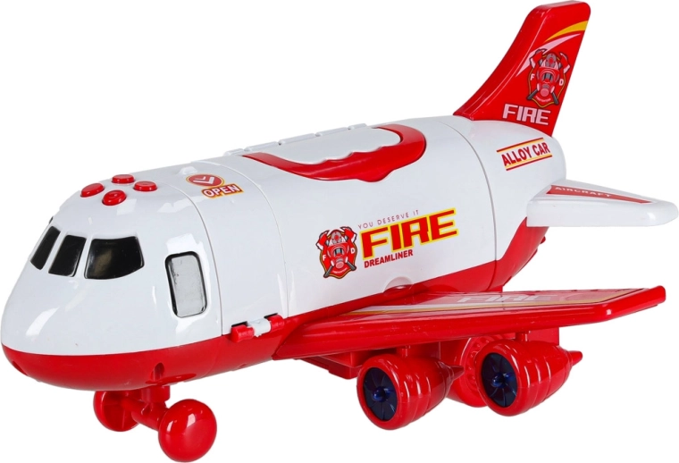 Az interaktív effektek fokozzák az élményt: a gombok megnyomására autentikus szirénák és villogó LED-ek indulnak a szárnyakon és a pilótafülke alatt. A felső praktikus fogantyú kényelmes hordozást és nyitást biztosít. Minden jármű és tábla szabadon futó kerekekkel rendelkezik, így az akció azonnal kezdődhet.