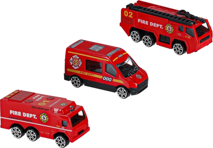 - 3 piros tűzoltóautó: létrás kocsi, páncélozott szállító, városi jármű