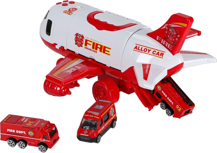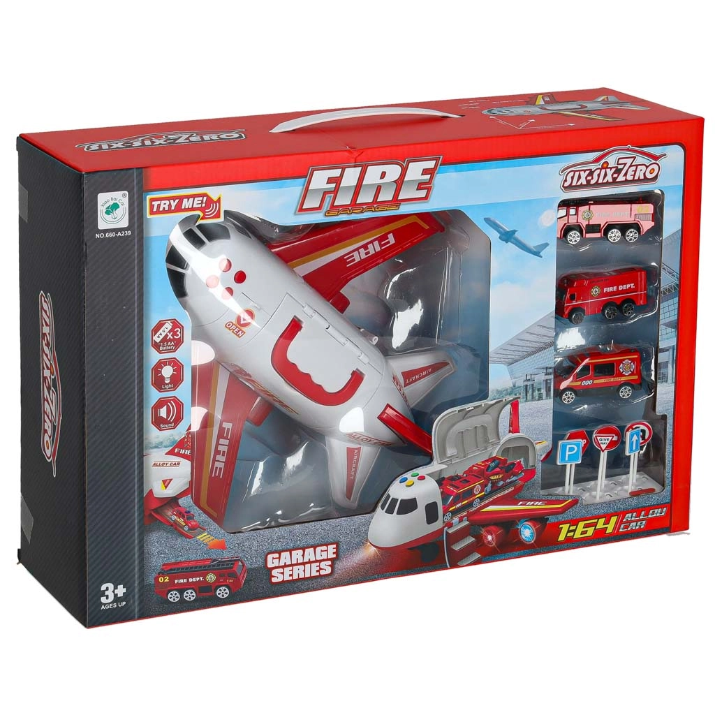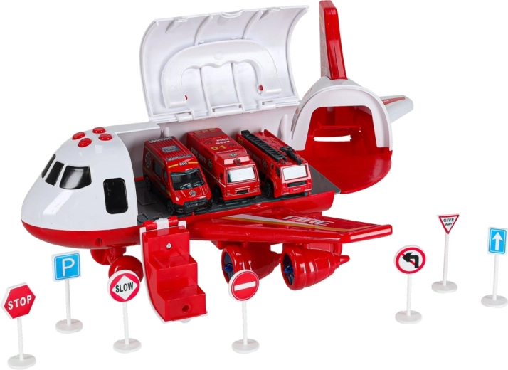 A csomag tartalma 3 tűzoltóautó és 7 közlekedési tábla. Minden elfér a repülőgép belsejében, így rend van és utazásra kész a készlet.