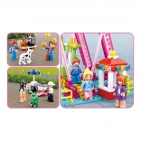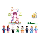 A szett központi eleme a nagy, rózsaszín-kék óriáskerék működő forgatással és több kabinnal. A gyerekek könnyedén megpörgetik az attrakciót, élethű vásári hangulatot teremtve.