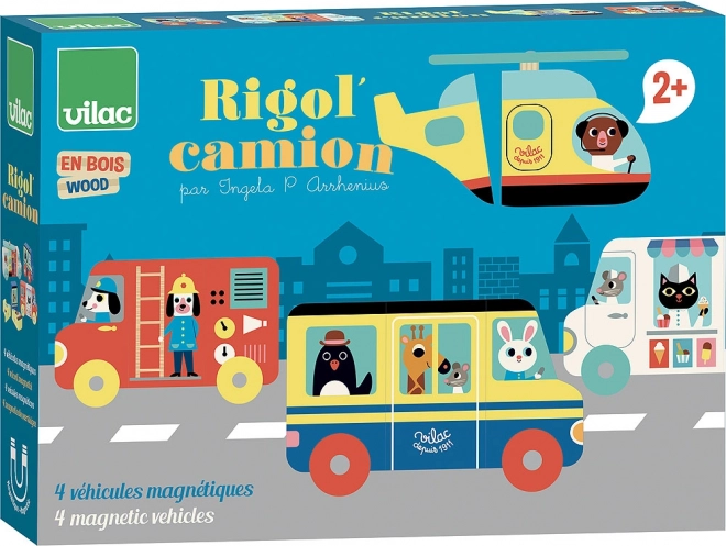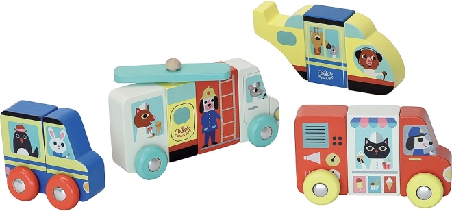 Ez a minőségi fa mágneses kirakó végtelen variációs lehetőséget kínál. A mágneses elemeknek köszönhetően a járművek könnyen össze- és szétszerelhetők, sőt a részek mókásan egymással is kombinálhatók. Vidám színek és Ingela P. Arrhenius retro illusztrációi teszik minden játékot látványos élménnyé.