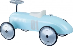 Fedezze fel a klasszikus versenyautók varázsát gyerekekre szabva. Ez a világoskék fém futóbicikli, amelyet veterán autók ihlettek, időtálló dizájnt ötvöz a biztonságos és kényelmes használattal. A gumírozott kerekek csendes futást biztosítanak még kemény felületen is, míg a kormány az első kerekek kanyarodását vezérli a természetes irányításért.