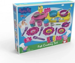 A PEPPA MALAC motívummal díszített műanyag edénykészlet szórakoztató főzőcskét kínál a gyerekeknek. A csomagban 35 darab található, köztük főzőlap, lábasok, tányérok, bögrék és evőeszközök. Könnyű, tartós és könnyen tisztítható kivitel.