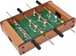 Ez a kisebb asztali foci ideális választás minden futballrajongónak, aki otthon is szeretne szórakozni. Színes, lakkozott fából készült, ami hosszú élettartamot garantál. Minden csapat 6 játékossal rendelkezik két rúdon, így a kezelés egyszerű, és a játék valósághű mérkőzést idéz.