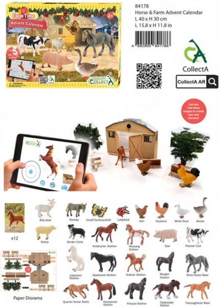 A CollectA Tanyasi állatok és lovak adventi naptár kellemesebbé teszi a mindennapi karácsonyi várakozást. December 1-től 24-ig minden nap feltárul egy új állatfigura a farmról: