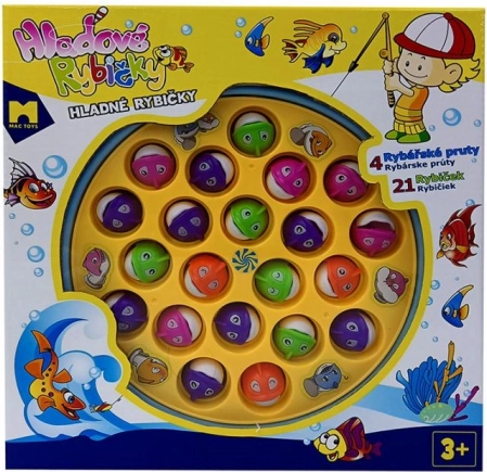 A csomag tartalma: 1 forgó játéktábla halacskákkal, 4 horgászbot és 21 halacska. A színek eltérhetnek az aktuális raktárkészlet függvényében.