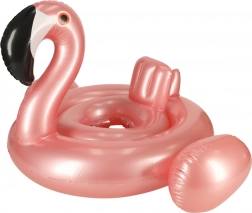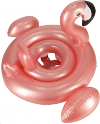 Aranyos, rózsaszín felfújható úszógumi flamingó formában, beépített üléssel a legkisebbeknek. Ideális medencébe és vízpartra, tartós PVC-ből, stabilitásra, kényelemre és a vízzel való biztonságosabb ismerkedésre tervezve (20 kg-ig, kb. 1–3 éves korig).