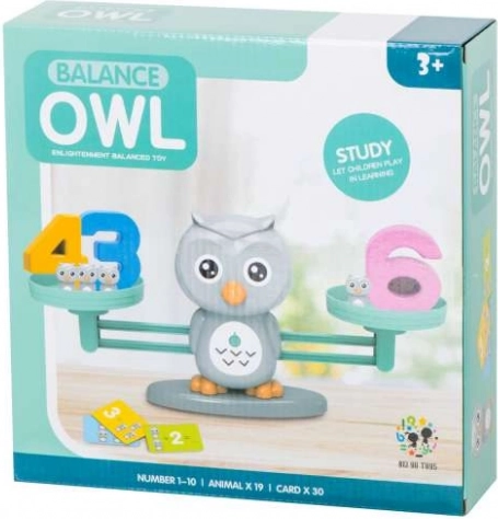 A dobozban megtalálható a bagoly mérleg, 19 kis bagoly, 10 műanyag számjegy és 30 feladatkártya. A változatos játékmódok fenntartják a gyerekek figyelmét, és támogatják a kreativitást és az önálló felfedezést.