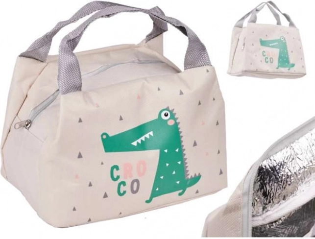 Stílusos és praktikus krokodilmintás uzsonnás táska, amely tovább frissen tartja az ételeket. Hőszigetelő belső réteggel, cipzáras zárással és kényelmes fogantyúval a könnyű hordozásért. Ideális iskolába, munkába, piknikre és utazáshoz.