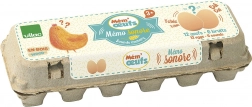 A hangzatos memóriajáték tojás formában, klasszikus kartondobozban ideális a szenzoros képességek fejlesztésére a gyerekeknél. A játék támogatja a memóriát azáltal, hogy a gyerekek azonos hangú tojásokat keresnek párban.