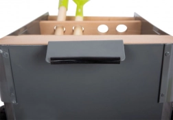 Ez a kertészeti kocsi lehetővé teszi a fiatal kertészek számára, hogy dolgozzanak álomágyásukon. A bükk- és fémstabil kocsit könnyen lehet tolni vagy húzni a kertben, mivel masszív kerekekkel van felszerelve. 5 darab szerszámot tartalmaz a biztonságos és szórakoztató kertészkedéshez.