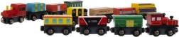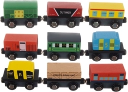 A készlet 3 mozdonyt és 9 különböző színű kocsit tartalmaz, így változatos szórakozást nyújt.