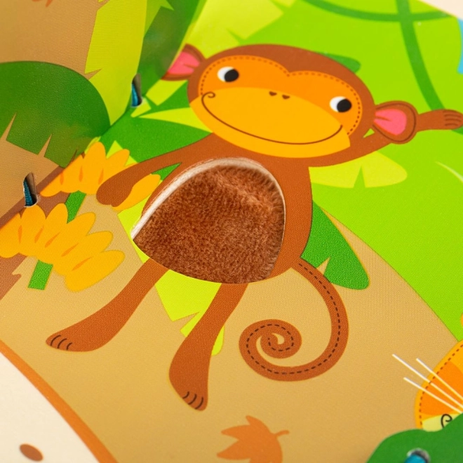 Vidám dzsungelképek ösztönzik a történetmesélést, bővítik a szókincset és támogatják a kommunikációt.