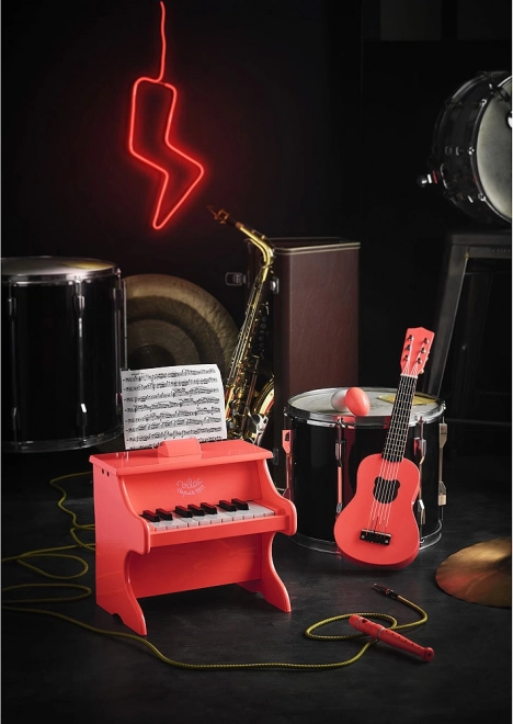 Ez a VILAC fa gitár élénk narancssárga színben tökéletes játék a kis zenészeknek. A nejlon húrok miatt kellemes rajta játszani és kíméletes a gyerekek ujjaihoz. Kompakt mérete jól illik a kis kezekhez és ösztönzi a kreatív játékot.