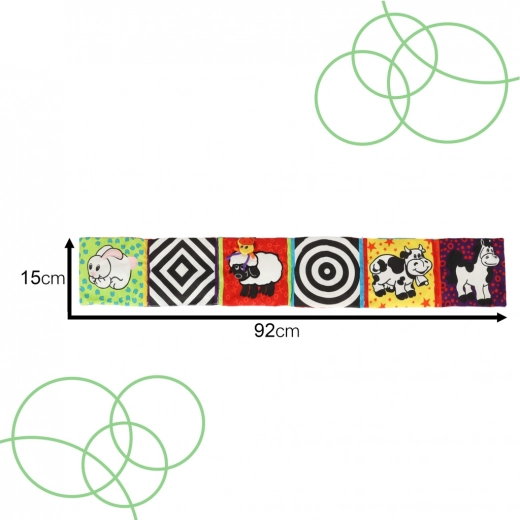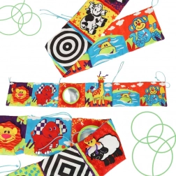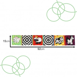 - Tartozékok: A termék tartalmaz egy biztonságos tükröt, susogó anyagot és sípolót.