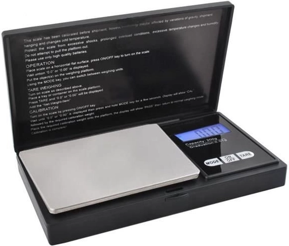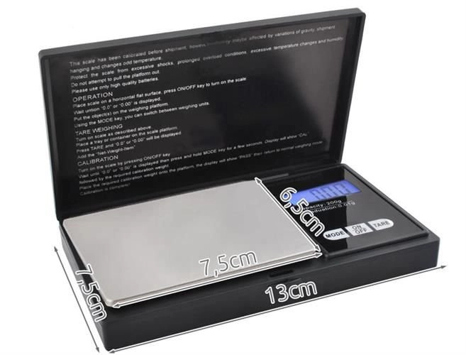 Zsebdigitális mérleg 200 g/0,01 g fedéllel, TARE-rel, háttérvilágítású LCD-vel és automatikus kikapcsolással. Kompakt, pontos és azonnal használható, elemekkel együtt.