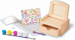 Fedezd fel az alkotás örömét ezzel a csodás kozmetikai ládikával. A készlet lehetővé teszi, hogy kifestd és kidíszítsd saját kis kincses ládikádat – ideális kreatív gyerekeknek.