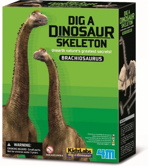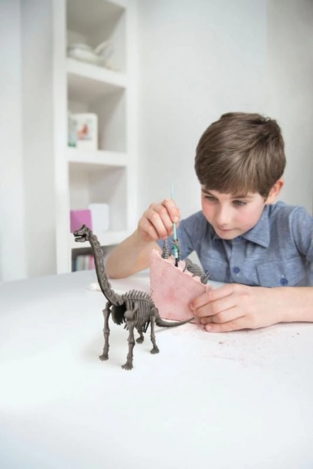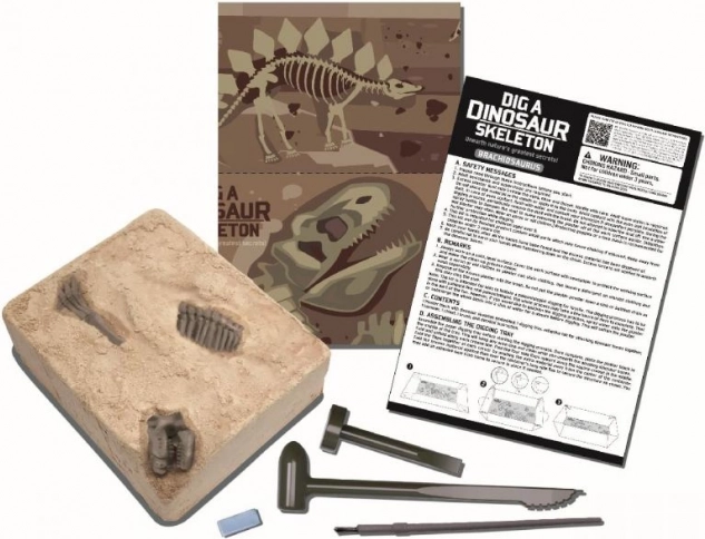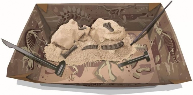 Készlet dinoszaurusz csontvázának kiásásához és összeállításához, gipszbe öntve. Tartalmazza a szükséges eszközöket.