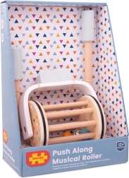 Gyönyörűen kidolgozott zenei henger 100% FSC® fából, amely nemcsak a motorikát, hanem gyermekei érzékszervi képességeit is támogatja. A mozgása és a csengettyű hangja, amely leng a fa lécek között, segíti a gyermek hallási képességének fejlődését. A játék természetes és színes fa kombinációjából áll, ahol a színek stimulálják a látás érzékelését.
