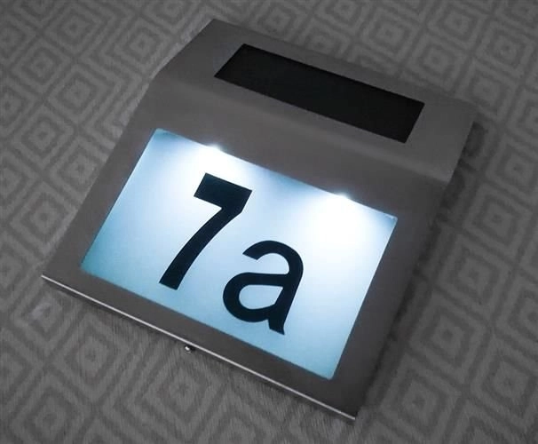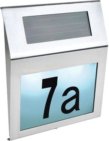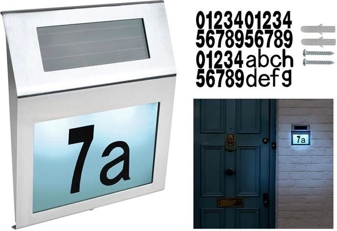 A szám egyben lámpaként is szolgál. A világítás napelemes energiával működik, ami a gyakorlatban azt jelenti, hogy nincsenek kábelek és nulla üzemeltetési költség. A napelemes házszám hasznos kiegészítő, amely biztosítja az olvasható jelölést közvetlenül az épület homlokzatán vagy a kerítésen. Műszaki specifikációk: