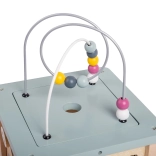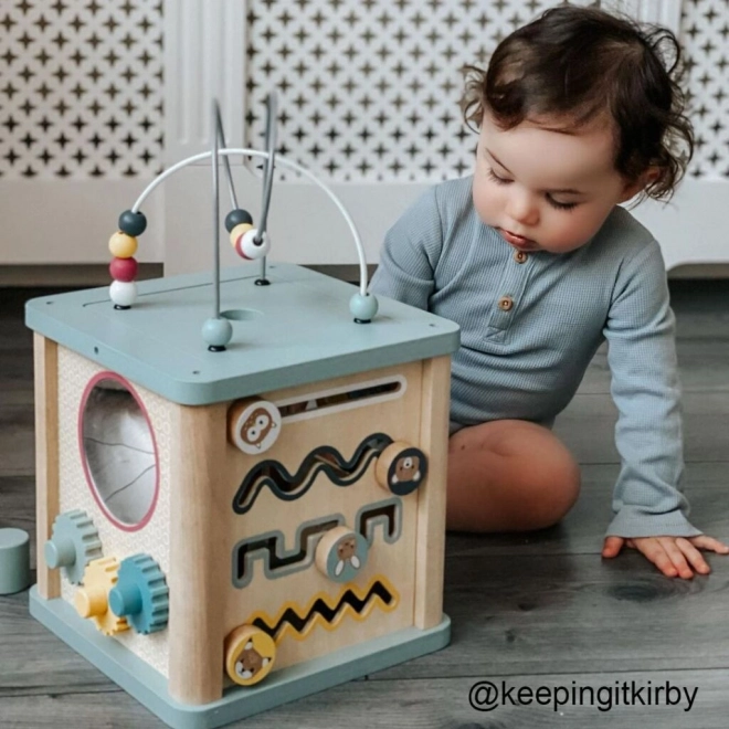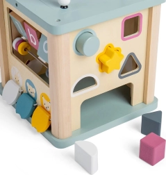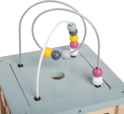 Fedezze fel a sokoldalú motorikus kockát, amely minőségi, 100% FSC tanúsítvánnyal rendelkező fából készült, és hosszú órákra leköti a gyerekeket. Minden oldalon más-más tevékenység vár – formabedobó, golyópálya, fogaskerekek és még sok más. A natúr fa és a lágy pasztell színek kombinációja fiúknak és lányoknak egyaránt ideális. A játék támogatja a motorikus készségek, a kommunikáció és a számfelismerés fejlődését, és biztonságos a gyermekek számára a környezetkímélő, FSC tanúsítvánnyal rendelkező anyagoknak köszönhetően.