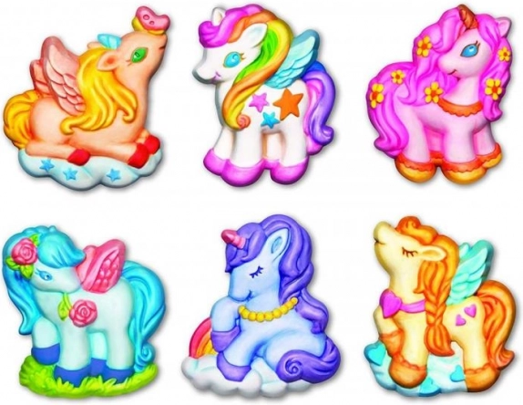 Készítsen és fessen csillogó gipsz mágneseket hűtőre vagy brossokat 6 aranyos unikornis formában. Ideális a gyerekek kreativitásának fejlesztéséhez.