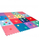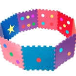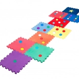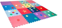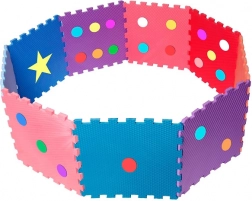 Élénk színek és formák (pöttyök, csillag) támogatják az érzékelést és a finom- illetve nagymozgások fejlődését. A hab elnyeli az ütéseket és véd a padló hidegétől.