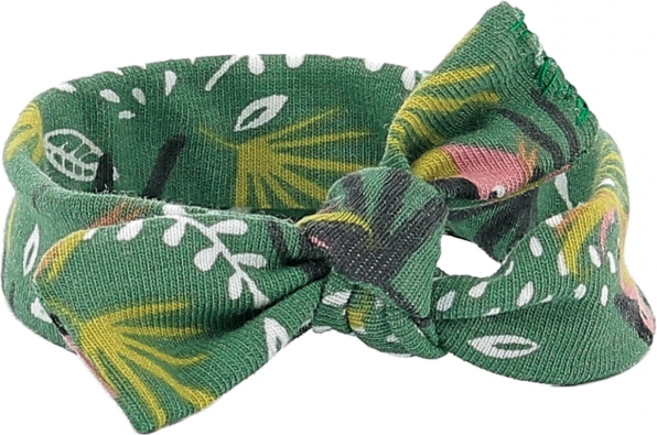 Textil fejpánt trópusi mintával és csomóval, jól tartja a formáját és remekül illik a többi darabhoz.
