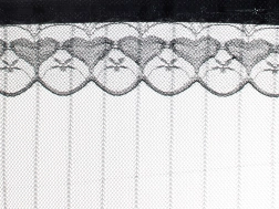 A finom fehér háló fekete szegéllyel diszkréten illeszkedik a belső térbe, miközben átengedi a fényt és a levegőt.