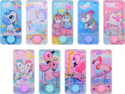 Ez a vízi játék rengeteg szórakozást és színes illusztrációt kínál egyszarvúakkal és flamingókkal, amely elbűvöli a gyerekeket. Minden játék többféle színű gombot tartalmaz az alsó részén, amelyek a gyűrűk mozgását irányítják a játékon belül. Nemcsak szórakoztatja a gyerekeket, hanem finom motorikus aktivitásra is ösztönzi őket.