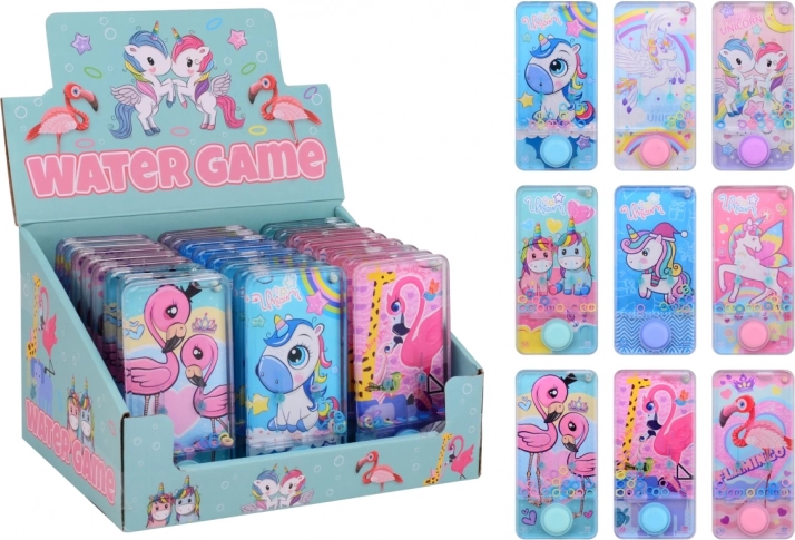 A vízi játék élénk színű egyszarvú és flamingó mintákkal díszített, amely minden gyermeket lenyűgöz.