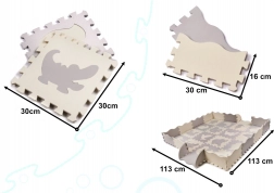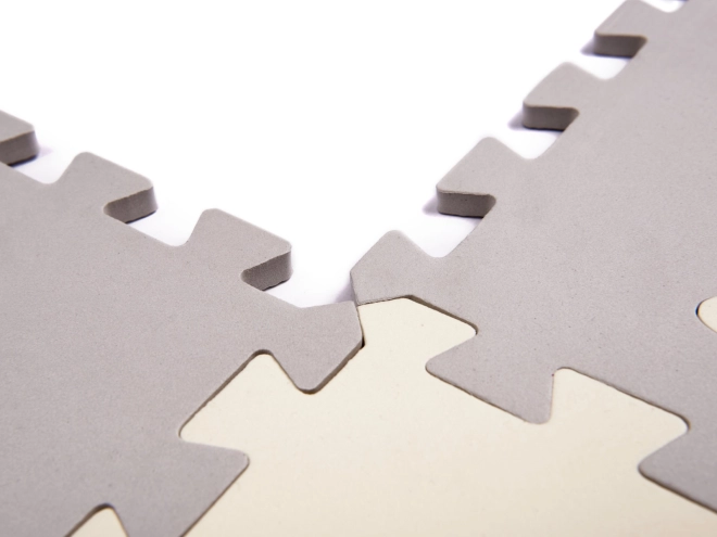 Puha gyerek habkirakós szőnyeg kivehető formákkal, amely biztonságos és kreatív játszóteret teremt. A megemelt széleknek köszönhetően összeállítható egy játékos elkerített rész, amely bent tartja a játékokat. A szőnyeg vízálló, csúszásgátló felületű, és kiválóan ütéscsillapító, ezért ideális az első lépésekhez. A semleges szürke és ekrü színek bármely enteriőrbe illenek.