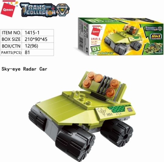 A Qman Thunder Expedition egy egyedi építőkészletet kínál, amely bevezeti Önt a katonai technológia világába. Ez a készlet lehetővé teszi, hogy fantáziáját valóra váltsa 629 darabból, amelyeket 8 különböző modellbe lehet összeállítani. A készlet kiváló minőségű és biztonságos ABS műanyagból készült, biztosítva a hosszú élettartamot és a biztonságot.