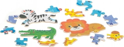 Nagyobb, könnyen megfogható darabok vidám állatokkal, amelyek fejlesztik a finommotorikát és támogatják az önálló kirakást.