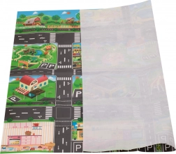 A nagy, vízálló városi mintás gyermekszőnyeg ideális a kreatív játékhoz. Műanyagból készült, ami viaszos vászont idéz, ezáltal könnyű tisztán tartani. Kis súlyának és összecsukhatóságának köszönhetően könnyen hordozható és otthonon kívül is használható, például pikniken.