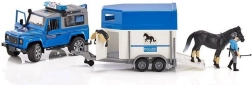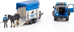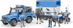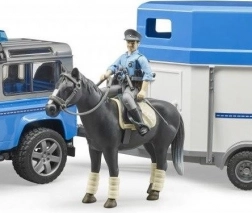 A Bruder világában is szükség van a törvények betartásának felügyeletére, amit ez a készlet biztosít. A készlet tartalmaz egy rendőrségi Land Rovert ló szállítóval, rendőr figurát és egy ló figurát.